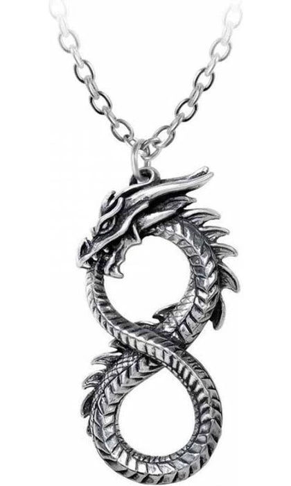 A 2″ long pewter pendant dragon-snake in the figure of 8.
