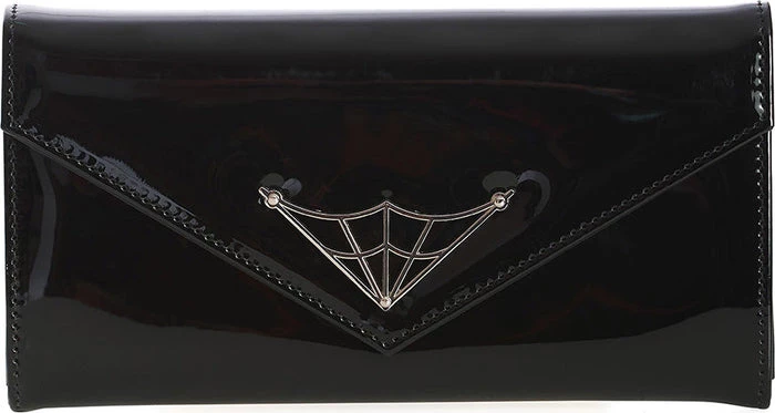 Wanna give off your best Morticia/goth housewife vibes? Well the Night lovers wallet is perfect for you! Sporting a shiny black look and the cutest silver spiderweb detail on the front, the wallet will be perfect for all future outfits and store all your necessary cards and items!