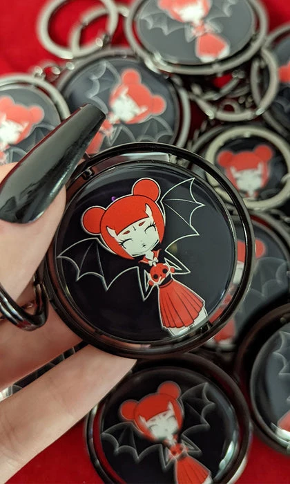 Add our favourite ghoul-friend, Spooky Scout, to your keys, bags or whatever else you want to! Made of shiny metal, featuring a spinnable center with a black, white and red Spooky Scout! This keyring will look awesome on anything and everything forever!Β