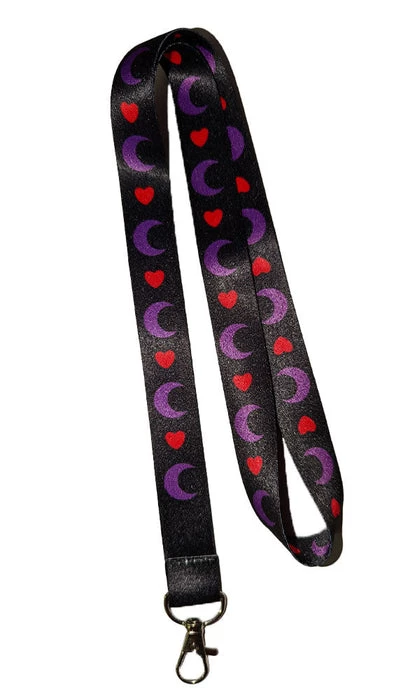 This Black, Red and Purple LanyardΒ features the cutest little hearts and crescent moons, perfect for any spooky witch or ghoul! The hook allows you to attach most styles of Card, ID holders or keys.