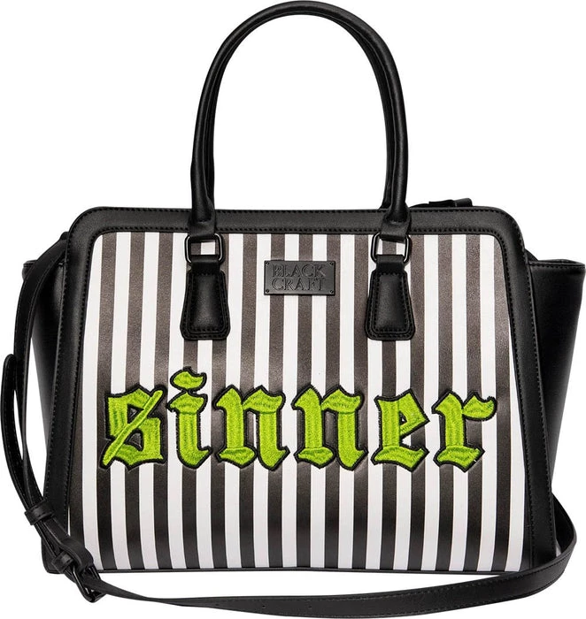 Channel some Beetlejuice vibes with the Sinner Satchel Bag. Large enough to hold all your daily needs and more for a day of mischief.Β