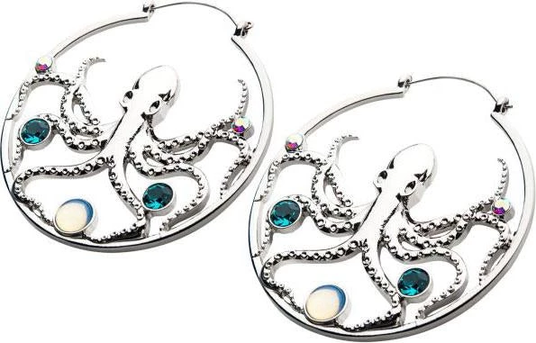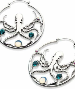 Rule the deep seaΒ with these Blue Zircon & White Opalite Silver Plated Octopus Plug Hoops.