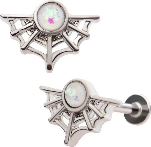 MATERIAL: 316L Steel Spider Web with Glitter Faux White Opal Labret.