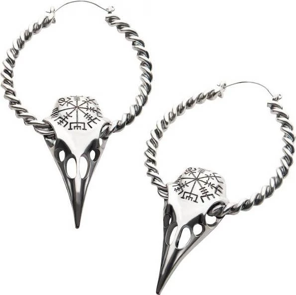 These badass Vegvisir Raven Skull plug-friendly hoops have surgical steel posts and not only have an awesomely detailedΒ hanging Raven Skull, they’re also framed with a rope chain and feature an Icelandic magical stave carved into the skulls! All hail these original plug hoop earrings…perfect for everyday wear- if you dare. Which we know you will!