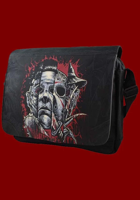 This Faces of Horror messenger bag is perfect for the spooky season or any time of year and features an adjustable strap and front zip pocket!Β