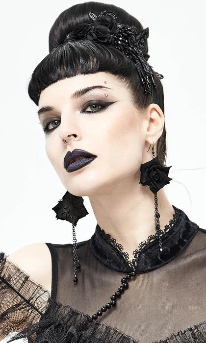 Frame your beautiful face with big black roses to match your big black heart. A must have statement piece that completes any gothic look.