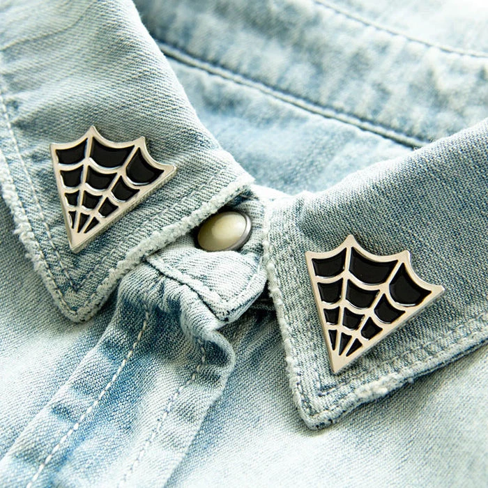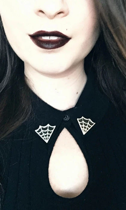 This unique accessory adds a hint of spooky style to any outfit. Features a pair of spiderwebs shaped to fit your collar points. These are great for Halloween. Gift them to the witch in your life.