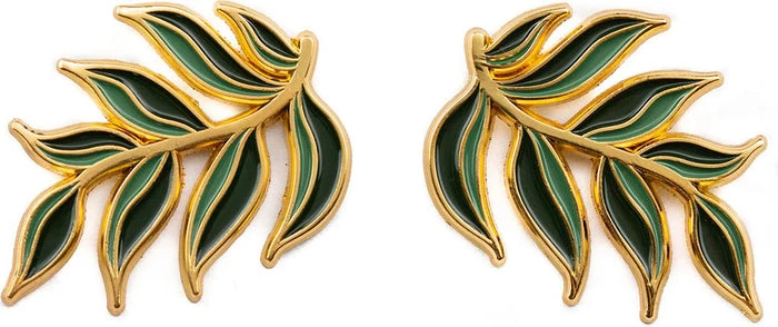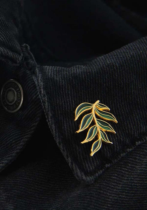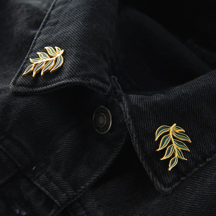 This elegant pin set features two brooches shaped like sprigs of leaves. They are the perfect size and shape to decorate the lapels of a denim jacket or shirt. Wear for an instant hint of botanical style.Β