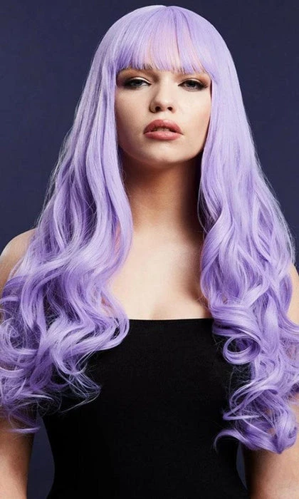 Complete your outfit with the Gigi Violet Wig! FeaturingΒ long curls and centre partΒ with a fringe, it will suit plenty of costumes and everyday looks.Β