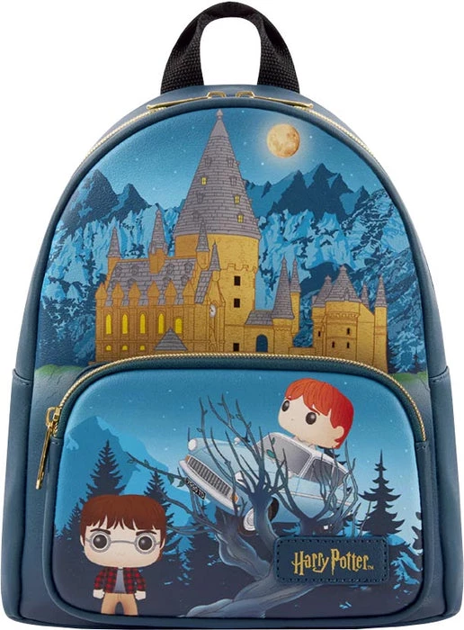 This mini backpack displays iconic moments from the feature film, Harry Potter and the Chamber of Secrets. On the front zipper pocket, Harry and Ron appear in a Funko Pop! art style. Up above, Hogwarts towers under a full moon. This accessory has plenty of room to store your wizarding essentials and is perfect for fans looking to keep one of their favorite movies close.