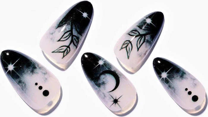 Who doesn’t love a pink x black combo?! I know we do! Add a little bit of mystery to your everyday look with the Leaves Under Moonlight Nails.