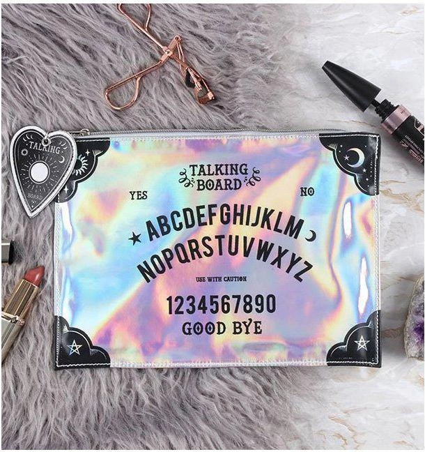 Never lose your make up again!Β Stand out from the crowd with this amazing Ouija board inspired holographic make up bag. With a zip top fastening and lined throughout you can be sure it will hold all of yourΒ must-have items. This beauty can also be used as a clutch or a pencil case – like you need anymore reasons why you need one in your life!