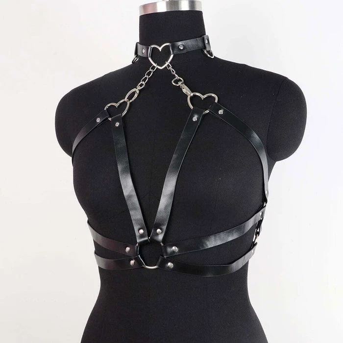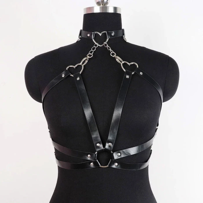 Hey lover~ Wanting to look fierce and kawaii at the same time? The Astaroth harness has got you covered! This sexy black faux leather harness features the cutest silver hearts and chains making this the perfect closet staple!Β