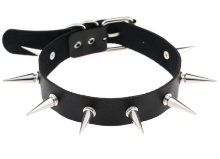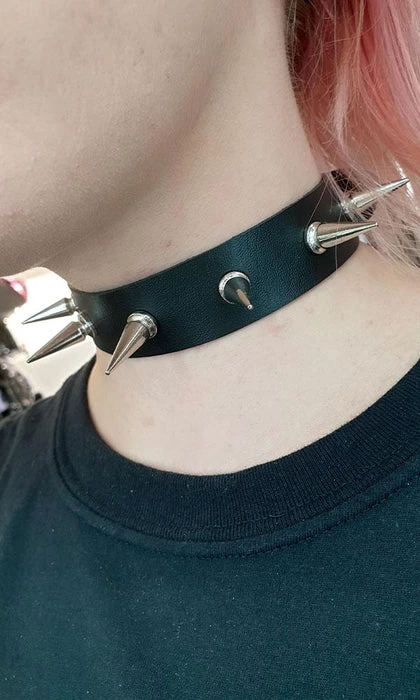 This fierce choker is the ultimate accessory to add some attitude to your everyday look! It features large metal spikes, vegan leather and a buckle closure.