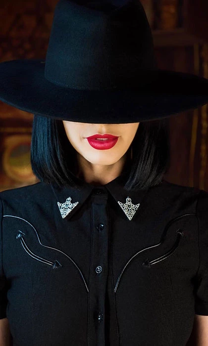 Walk the wild frontier in this Classic Western Hat.Β This classic piece is a must have inΒ your wardrobe. Features includeΒ a deep black colour and a classic look that is iconic to wild Western movies. Live out your gothic western fantasies with this hat!Β