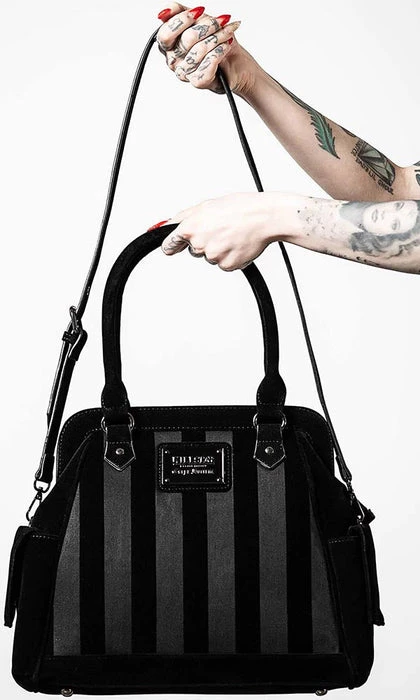 – Brushed velvet and faux leather detailing.