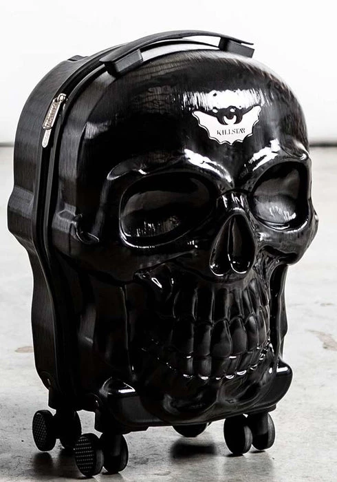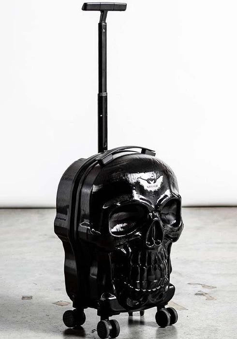Bring a bit of magic on your adventures out the crypt. The ‘Tomb’ travel suitcase will sure cause a stir on your trips to Transylvania. Hard protective case in a custom skull mold, collapsible handle and four wheels so you can be on a constant roll. All black like your soul! With zip closure, multi compartments and just the right size for your carry-on.