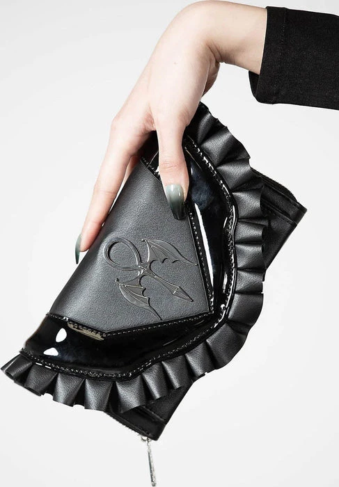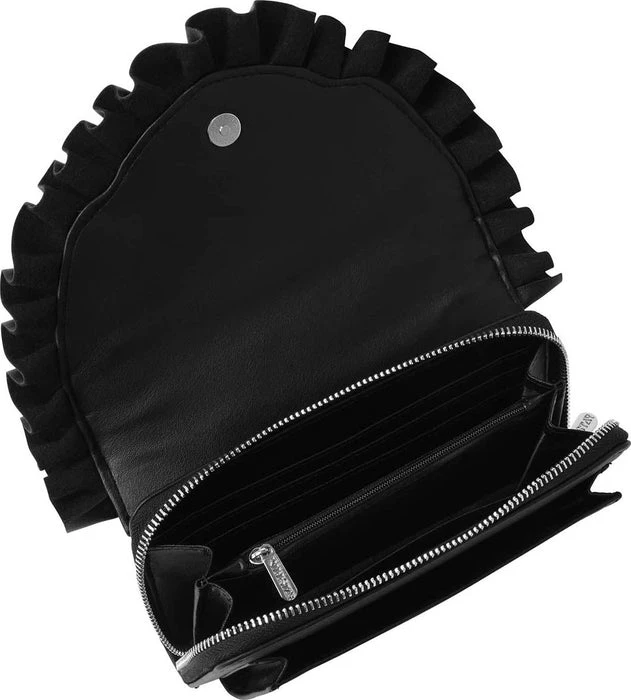 – Faux leather ruffles.