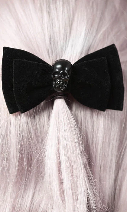 Add some punk rock drama to your locks with the ‘Bow Down’ barrette. Featuring a statement black bow and black skull feature. Complete your looks with this must-have accessory.