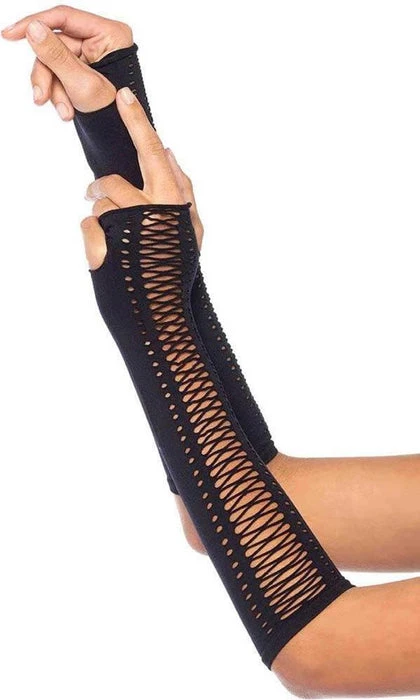 From wicked witch to fierce festival wear, the Leg Avenue Faux Lace Up Fingerless Gloves add an extra edgy vibe to any costume. The seamless costume gloves feature a faux lace up accents, fingerless design, and elbow length. From fingers to just above the elbow, the stretchy seamless material stretches to fit comfortably for extended wear with a criss cross lace up accent.