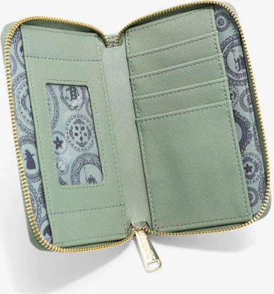 Inspired by Disney’s Alice in Wonderland, this gorgeous wallet features a front design of Alice silhoutted against a playing card adorned with stunning applique flowers. Unzip the wallet to reveal an interior lining pattern of Wonderland’s most colourful and mad inhabitants along with storage space for cards, bills and a clear ID sleeve.
