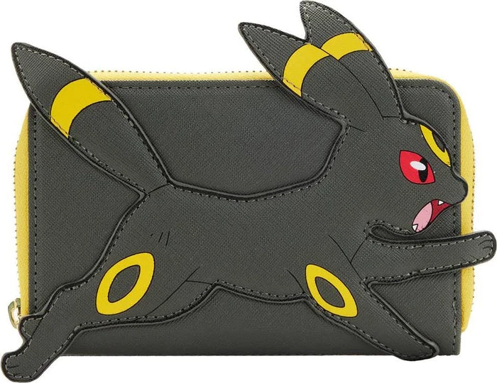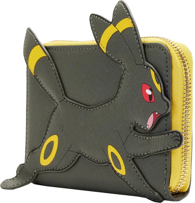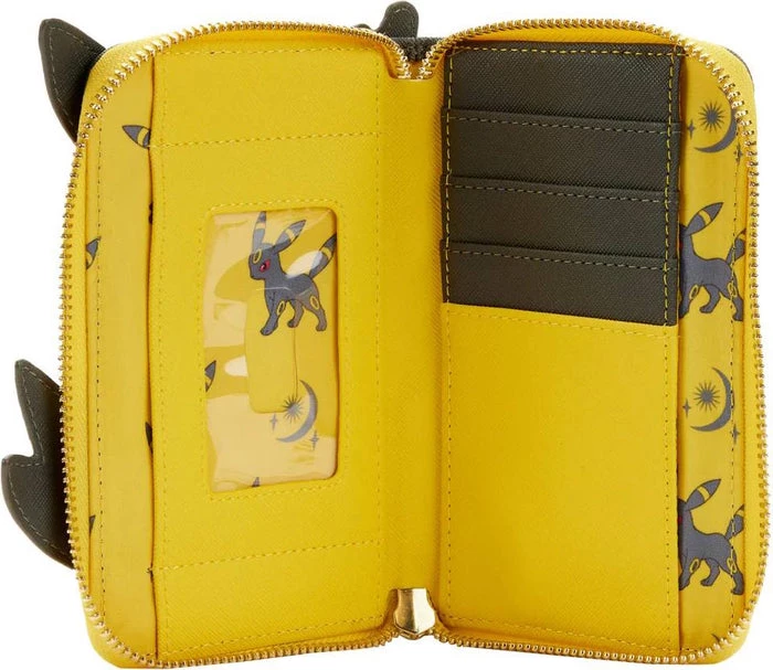 Be swift to leveling up your PokΓ©mon apparel with the Loungefly PokΓ©mon Umbreon Cosplay Zip Around Wallet! This stylish, Dark type wallet can fit a bunch of supplies and necessities for any quest. This design features 4 slots for holding cards, a clear window slot for holding your ID, and a zips closed to keep everything contained. On the back (in the bottom right corner) youβll find Umbreonβs national number, 197, in yellow. The yellow stripes and red eyes pop against the black background.