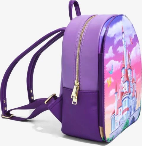 The wonder and enchantment of a Disney castle can be yours with Loungeflyβs Castle Snap Flap Mini Backpack!