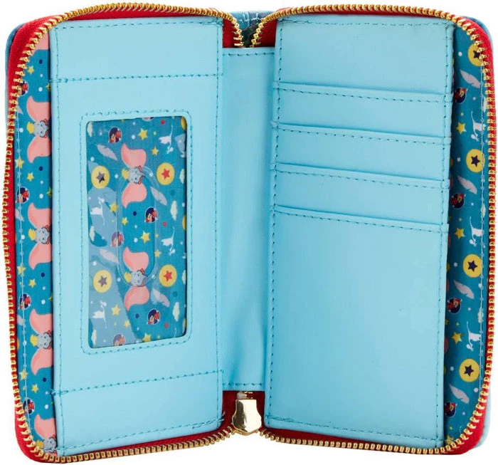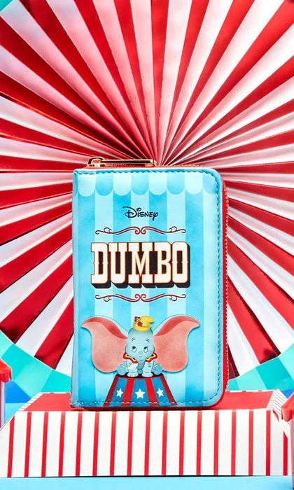 Step right up to view the latest attraction in Loungefly’s Disney Book series! This zip around wallet celebrates the animated classic Dumbo in a charming book-inspired interpretation. On the front, Dumbo sits below his title as he prepares to perform. Timothy Q. Mouse watches from the back side of the wallet while munching on his favorite snack. This wallet has 4 slots for holding cards, as well as a clear window slot for holding your ID. Perfect for everyday use, this accessory will hold your important items as you take flight on your next adventure.