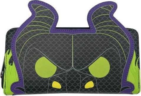 On the front of this wallet, Maleficent as the iconic dragon comes to life with custom-shaped applique and vibrant colours. Her black scales cover the body of the wallet and on the back, a wall of green flames roars.