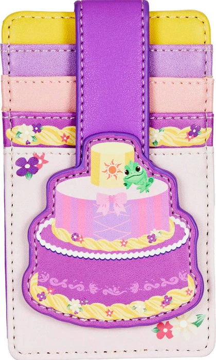 Pascal practically glows with excitement, atop a cake fit for a princess. Celebrate Rapunzel’s journey home with this Loungefly Tangled Rapunzel Cake Cosplay Card Holder