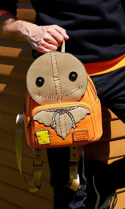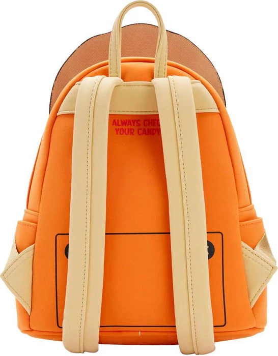 Keep the jack-oβ-lanterns lit! Sam, from Trick βr Treat,Β isΒ coming to make sure the rules of Halloween are followed as this Loungefly Trick βr TreatΒ Sam Cosplay Mini Backpack. On the front of this backpack, Sam comes to life in applique and burlap detail. A zipped compartment, near the tied loop around Samβs neck, opens and closes with a clear resin lollipop charm pull. On the back, the message βAlways check your candyβ serves as a reminder to stock up on chocolate and add a thrill to your adventures. Itβs the perfect accessory for trick-or-treatingβor any fun outing you have planned.