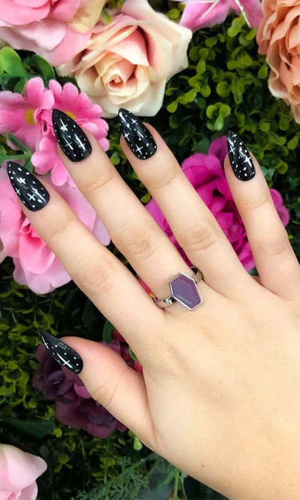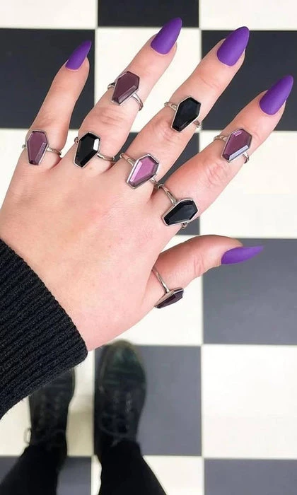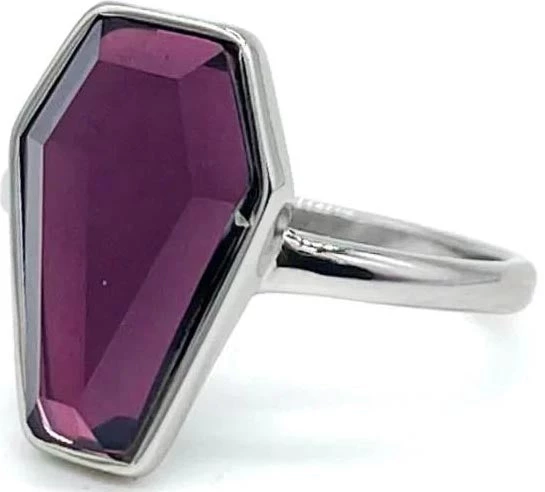Connect with the stars in the night sky with the Astral Crypt Coffin Ring. A dreamy deep purple stone set onto a Stainless Steel band. Perfect for all you star gazers!