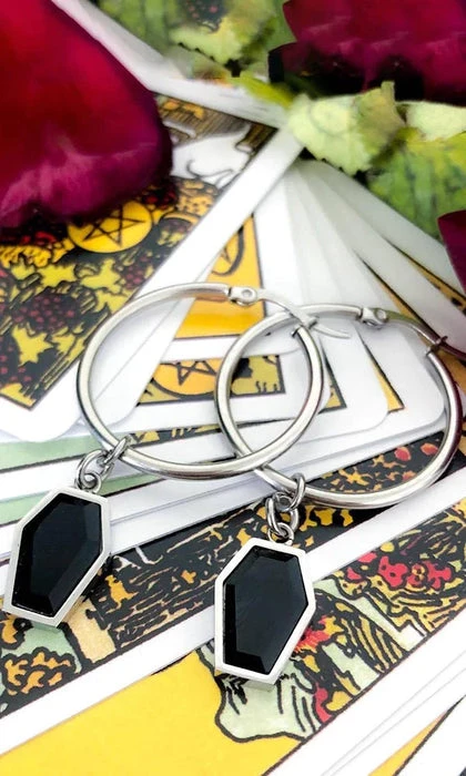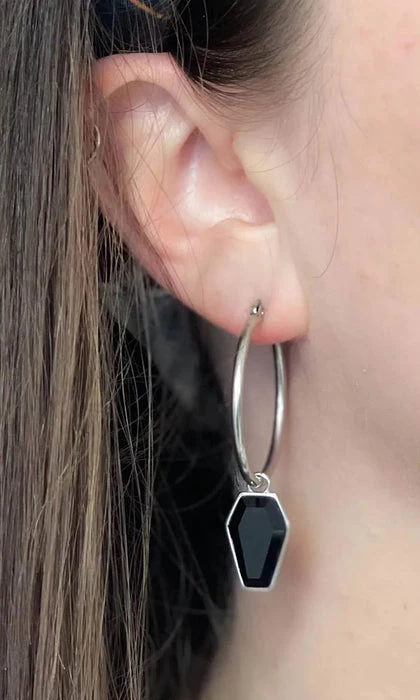 Dainty Death on the go! The Crypt summons you with the Black Coffin Hoops.