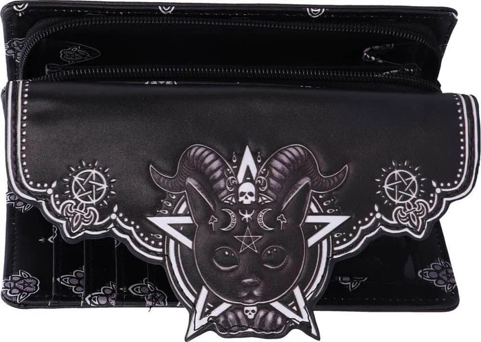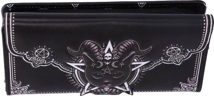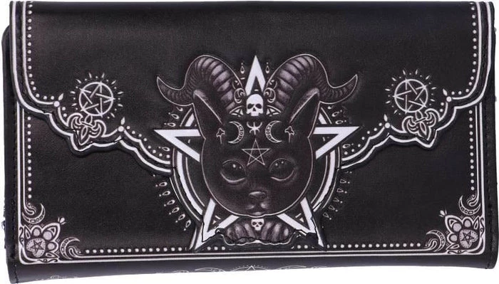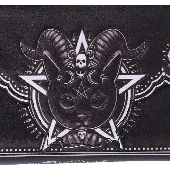 This cat is the union of good and evil, as you look into its black eyes you notice the darkness that resides. Inside this cat appears to be the spirit of Baphomet, encapsulated by goat horns and satanic symbology. This amalgamation of horror and delight will make the perfect addition to any feline fanaticβs collection.