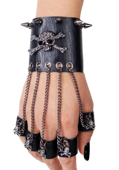 Add some punk styling to your outfit with this skull and crossbones bracelet!