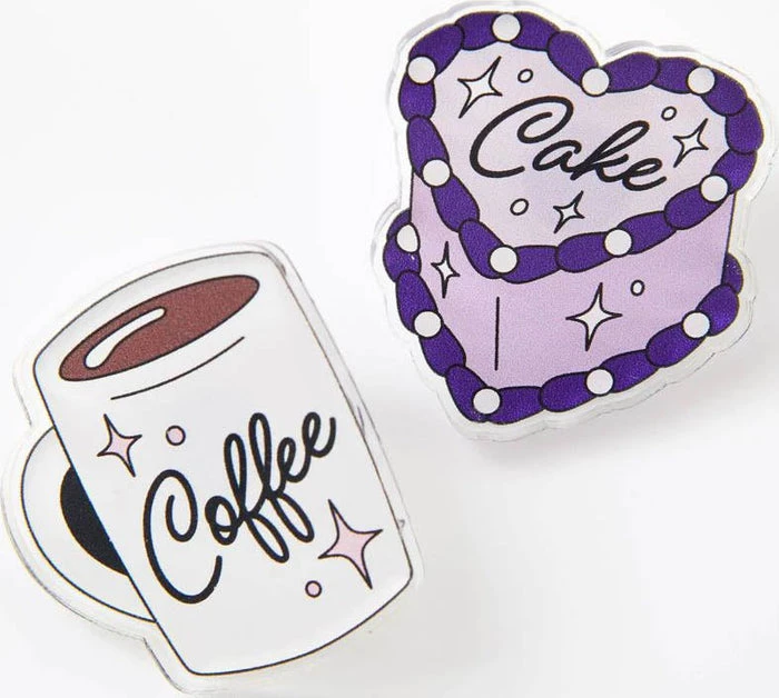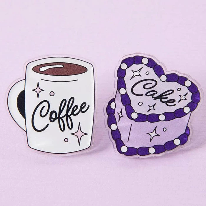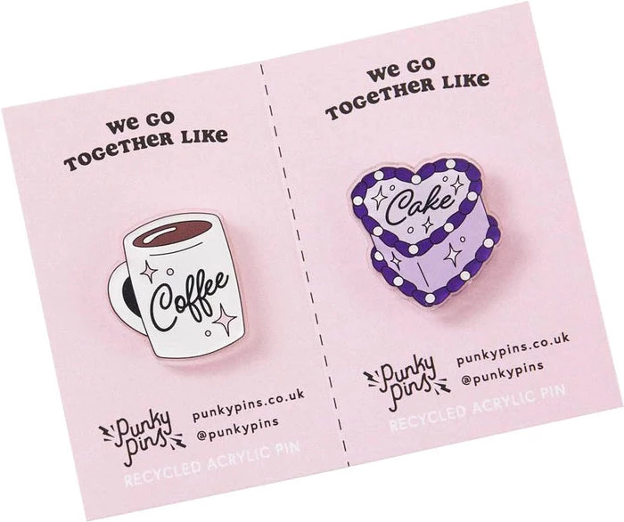 Celebrate your friendship with coffee βnβ cake thanks to a pair of pins that serve as a permanent reminder of your unbreakable bond. Design by Lucy Jenn Recycled acrylic pin set