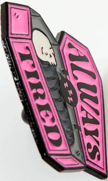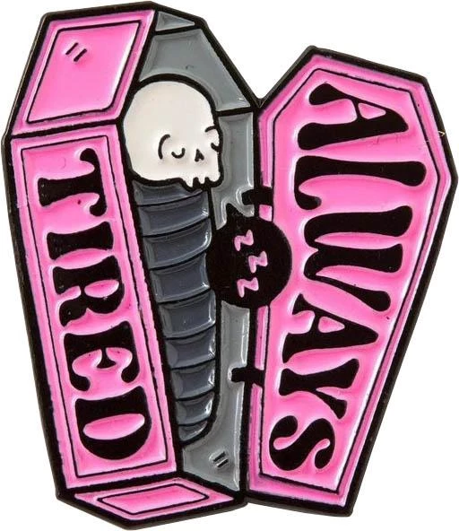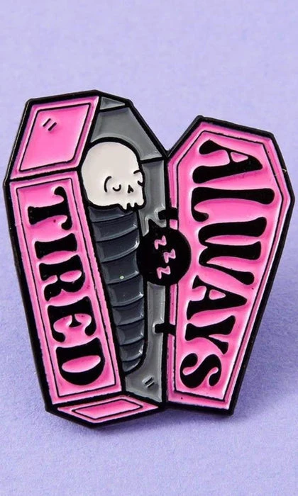 If your life is a constant battle between hitting the snooze button and ‘I’ll sleep when I’m dead,’ this pin was quite literally made for you. NGL, that coffin looks pretty damn cosy…