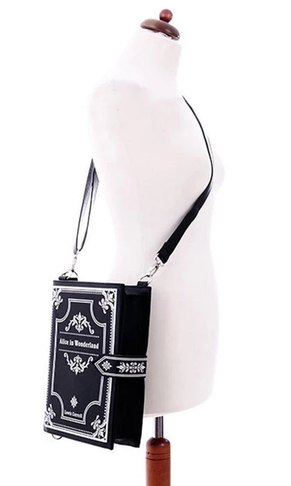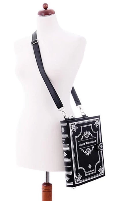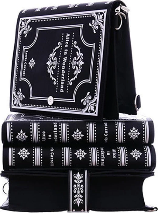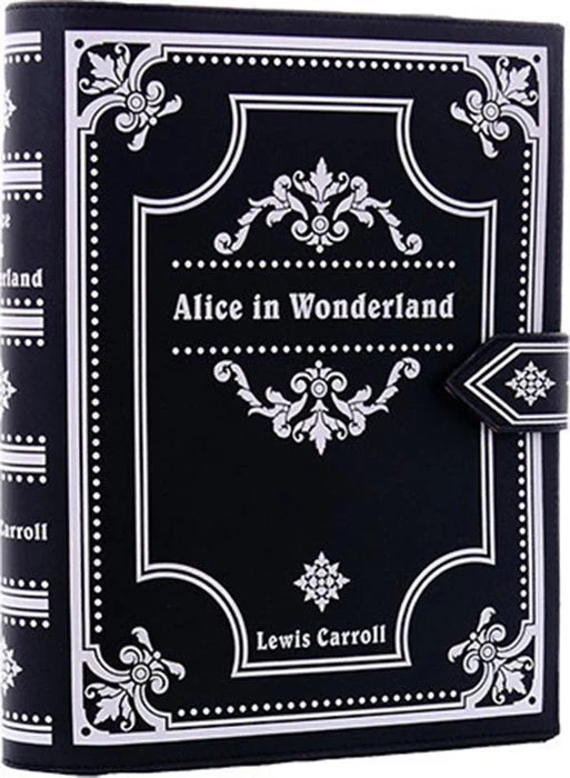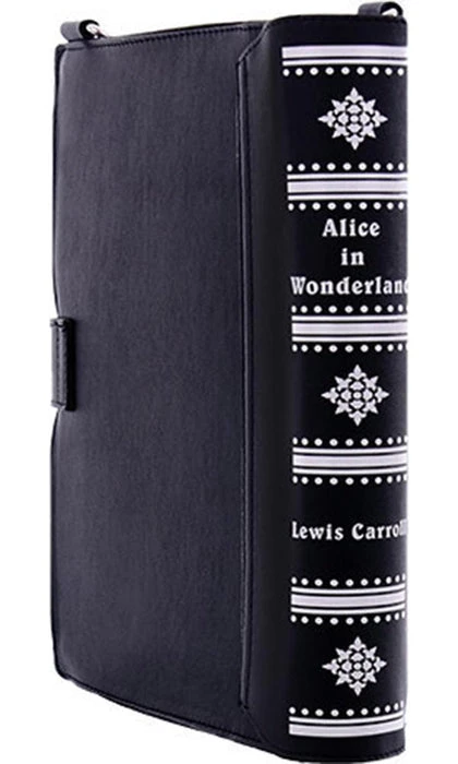 Satisfy the Alice in you with this extraordinaryΒ handbag in the shape of a book! The front of the bag represents a print of the book cover: “Alice in Wonderland” by Lewis Carroll, written over 150 years ago in 1865. White floralΒ prints are also on the edge of the book and on the strap, in an antique styling. The additional handles allow you to carry the bag in two ways: horizontally or vertically!Β Strongly stiffened, it features a solid material fastened with aΒ decorative strap with snap magnetic closure,Β two magnet buttons hidden under the flap (which is the book cover), andΒ a zipper to ensure that any of your treasures and trinkets won’t escape. Fully lined with inner zipper pocket and two smaller pockets, it is roomy enough to carry everything you need on a daily basis.