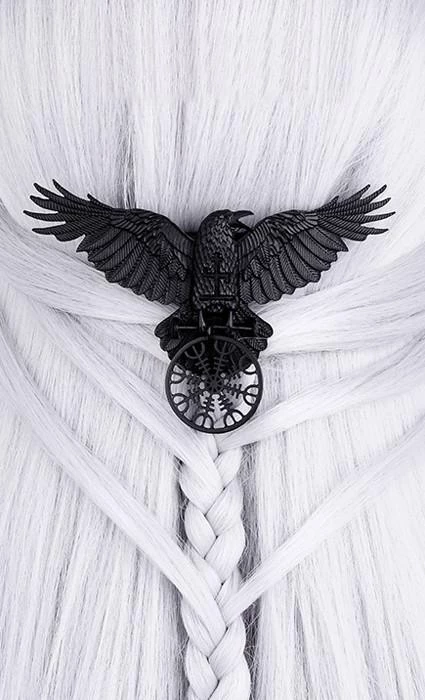 This beautiful Hairclip presents a black raven, wings outstretched with an engraved heeling ruin.Β