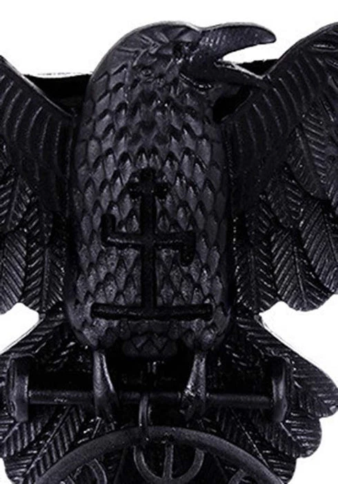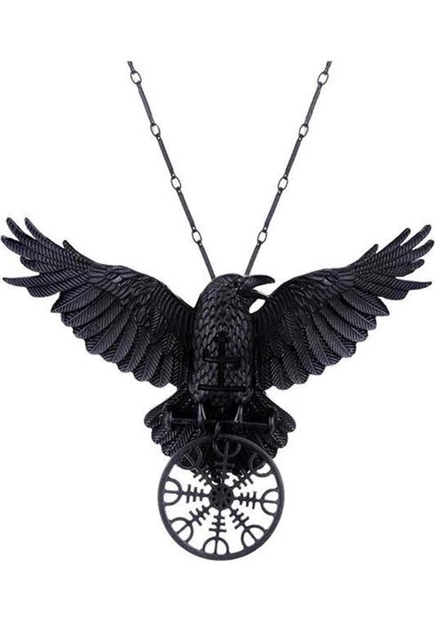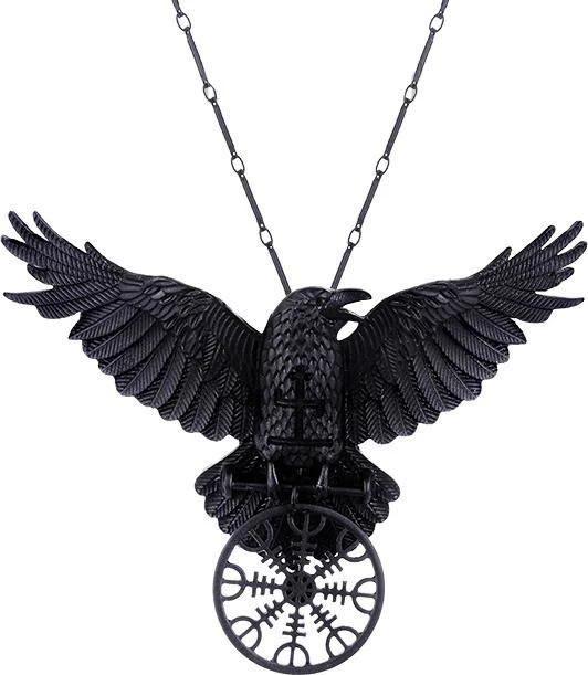 This beautiful pendant of a black raven, wings outstretched with an engraved heeling ruin.