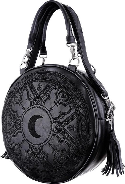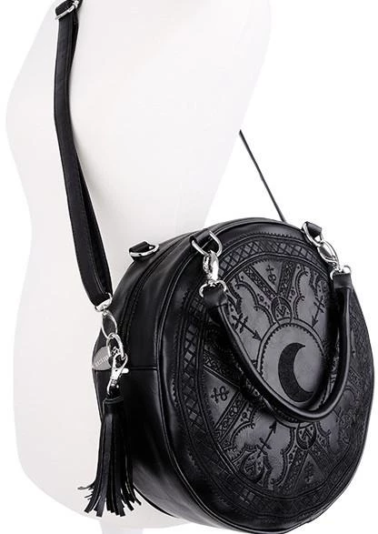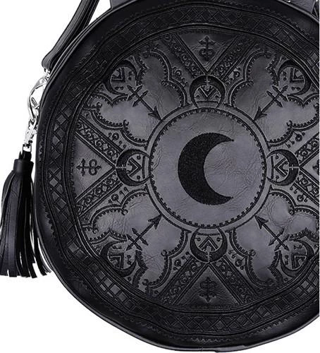 The bag features a detailed henna style embroidery with hidden alchemical symbols and crescent moon. The inside is lined with black soft fabric and has an open and zippered pocket to keep your potions safe! Restyle have thought of everything making the tassels detachable and including a long strap to make the bag even more versatile.