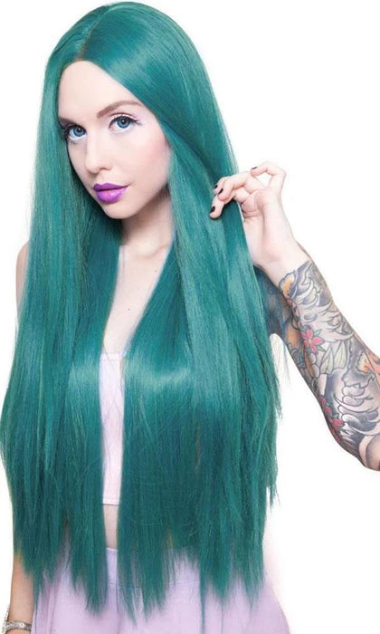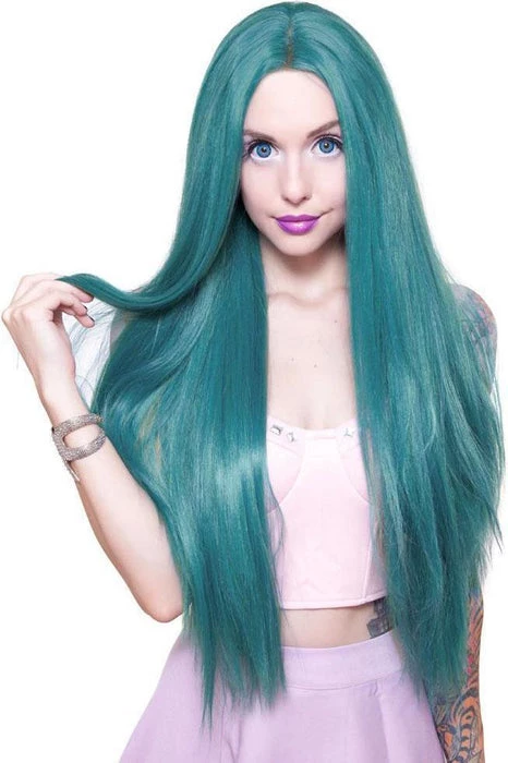Release your inner mermaid in the Yaki Straight Turquoise Mix 32 Inch Rockstar Wig.
