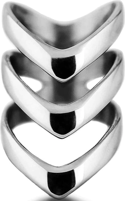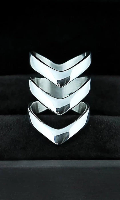 A Stainless Steel Ring with a triple chevron and a Mirror Polish finish.