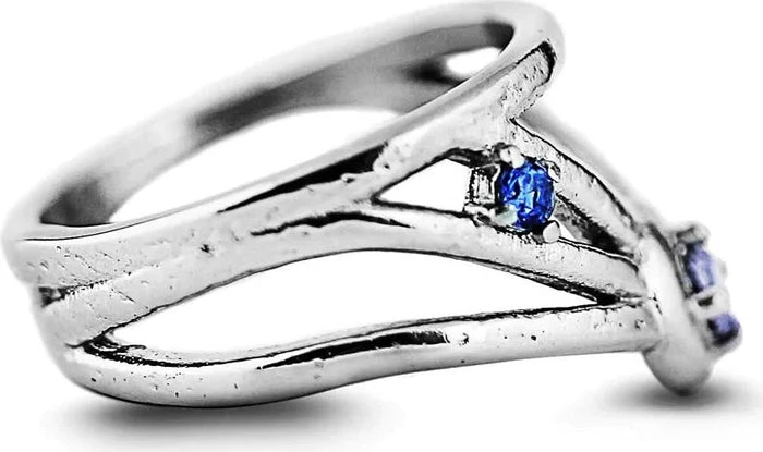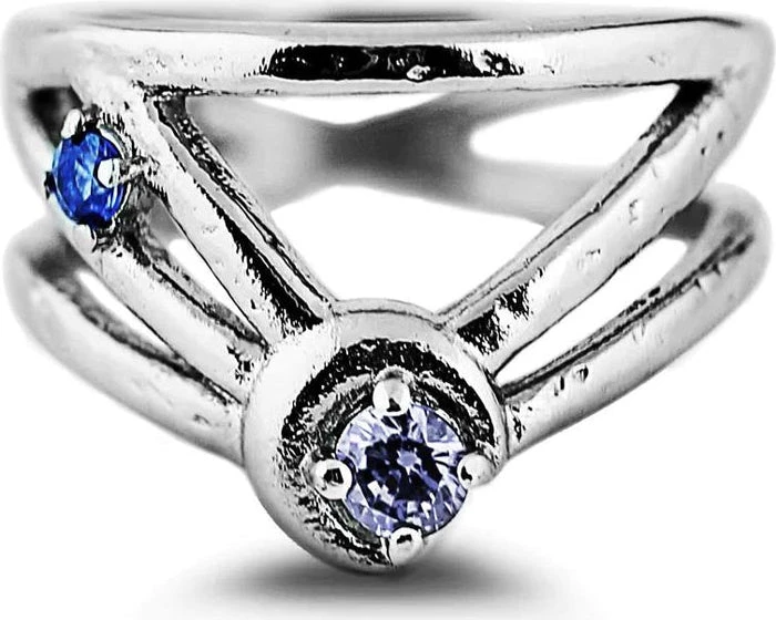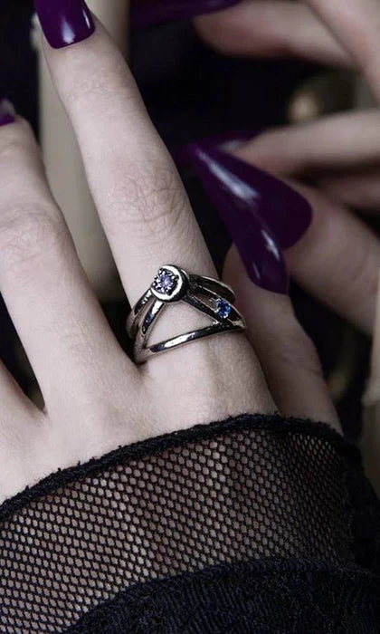 A magical Stainless Steel Ring with a Mirror Polish finish, adorned with sparkling gemstones of the deep blues and purple hues of the Cosmos.