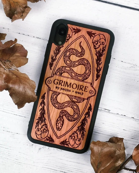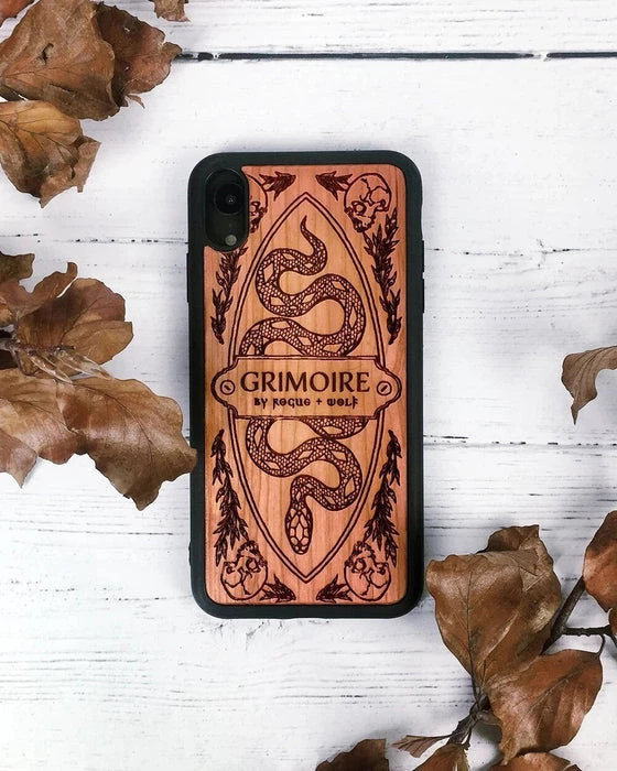 A Wooden Phone Case carved with the markings of our sacred Grimoire. May it offer you protection when you need it most.