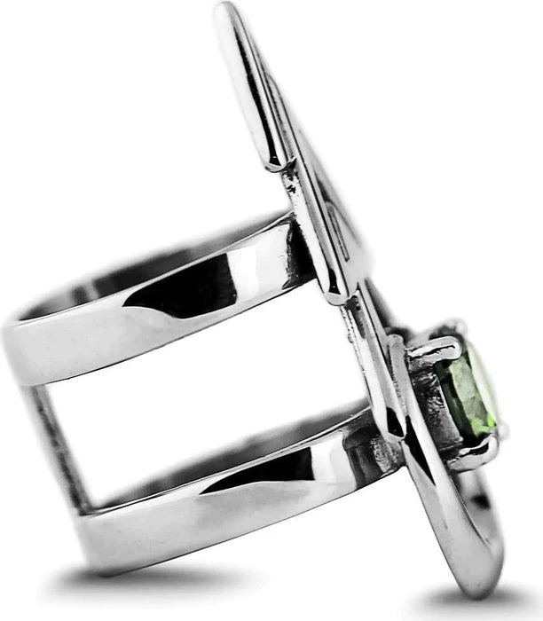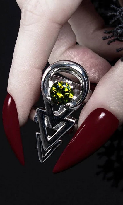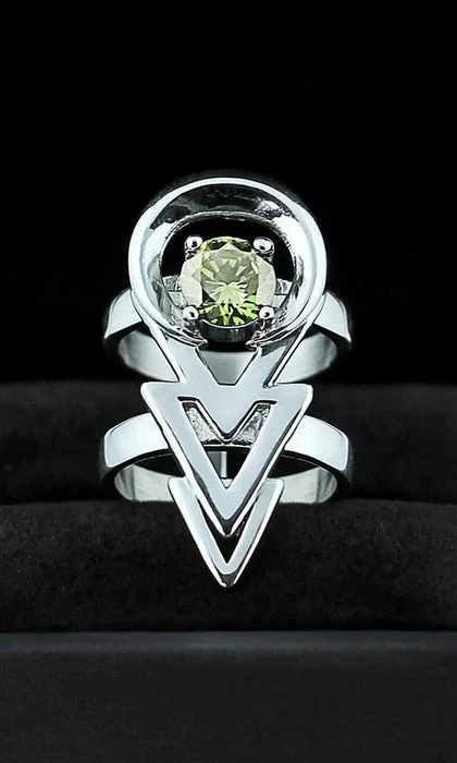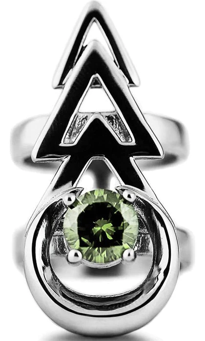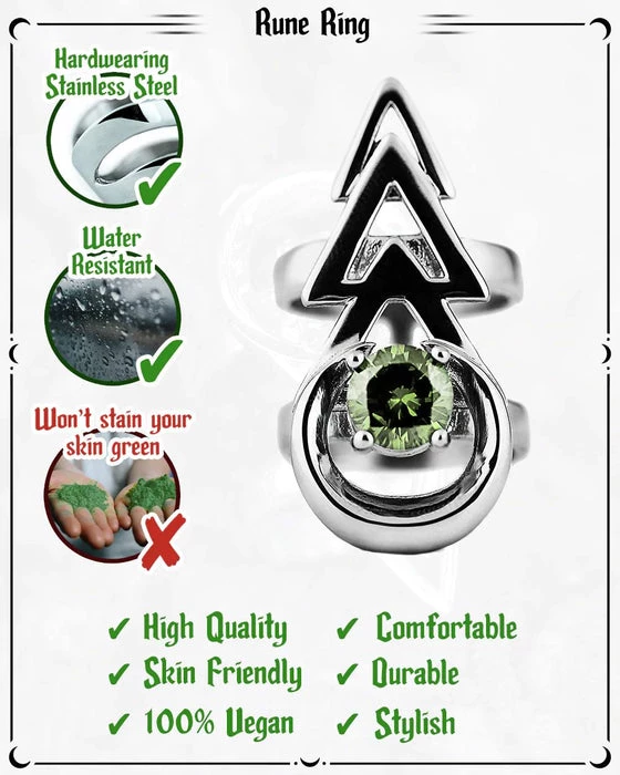 A magical Stainless Steel Ring with a Mirror Polish finish, decorated with mystical Pale Emerald Green Gemstone