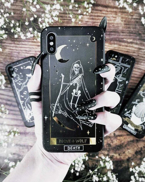 The Death Tarot: The end of everything is also the beginning. Death, the ageless figure glides across a timeless ocean. Inescapable, but not to be feared. Welcome the next chapter with open arms, and let go of what you cannot change.You will be spellbound by the beautiful Metallic Golden mirror effect details on this case! And it’s perfectly compact to fit in your pocket, so you can carry the magic around with you. With a matte finish, the hard cover case protects the sides and back of your phone with access to all ports – buttons remain clickable. What’s your favourite card in the deck?