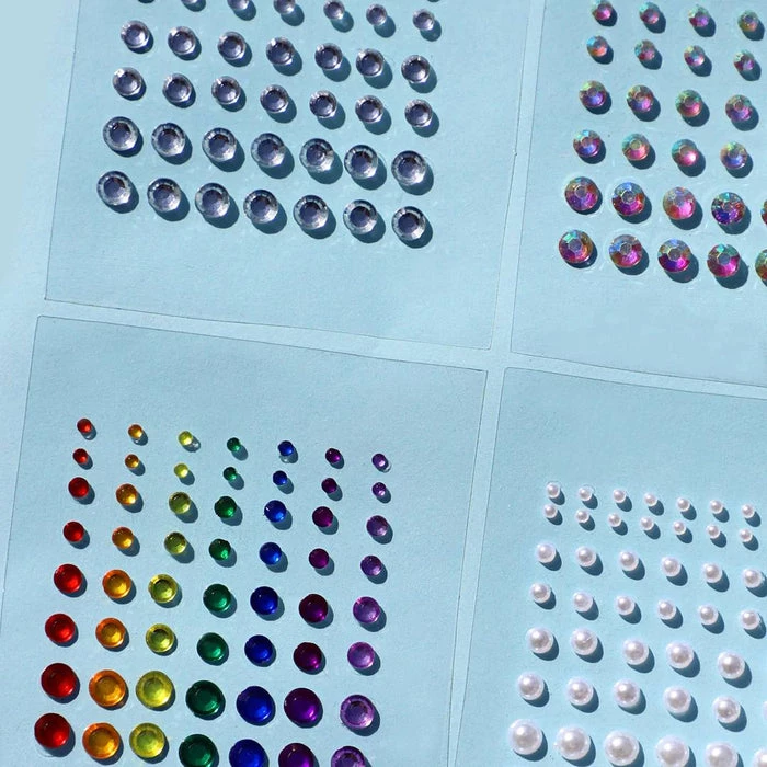 Remove each jewel from the plastic sheet and stick onto desired areas. For longer lasting stay, apply lash glue onto the adhesive side of the jewel before applying onto skin.
