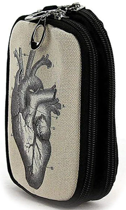 This Vintage HeartΒ Wristlet Purse is perfect for a walk on the dark side! It features quality canvas, zippered compartments and is a statement everyday accessory!