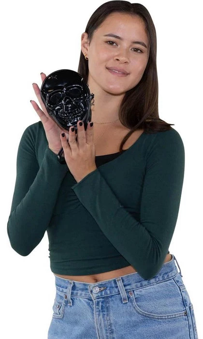 Add a small touch of spook to yourย outfit with this Smiling Skull Zippered Wristlet Purse! Super versatile – Mix and match with with your wardrobe effortlessly.ย
